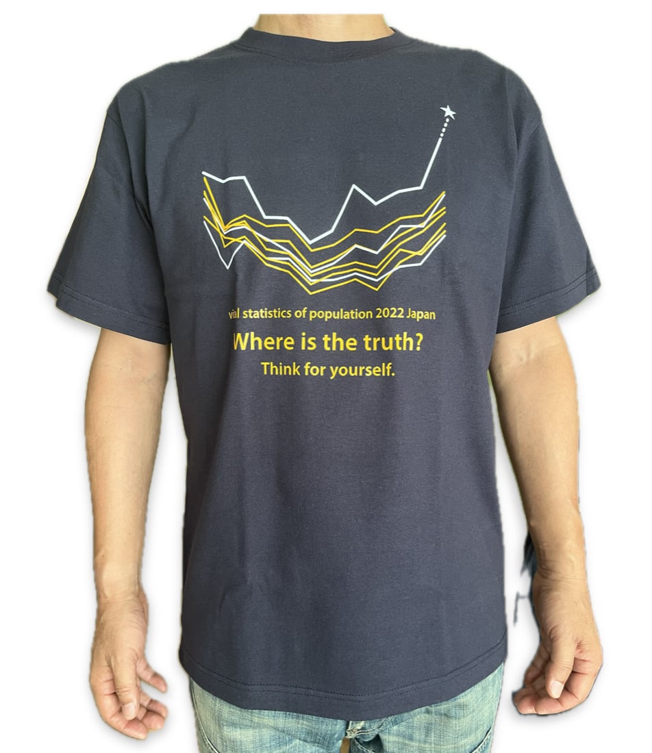 2022年日本の人口動態調査グラフTシャツに理性が戻る国民的な紺が誕生です。