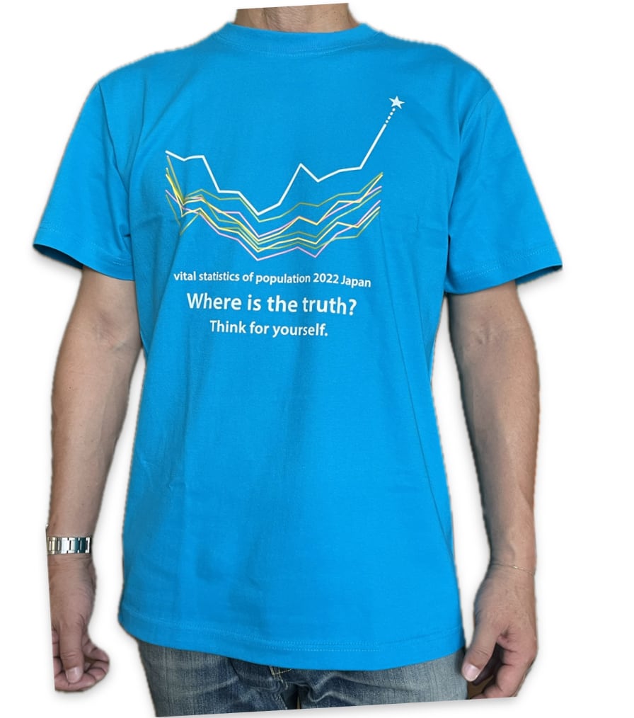 人口動態調査グラフTシャツ 青(ターコイズ)